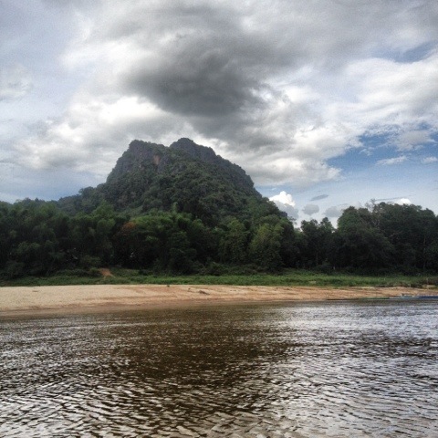 As we make our way down the Mekong, I note this is what i imagined southeast Asia to look like, though it is strikingly different than anything we’ve seen thus far. The wide, brown and rust tinged river is flanked by sandy embankments that extend upward, transitioning to rolling deep green hills, saturated with tropical trees. I’ve seen it before, in movies, but in person it is quite different. The sheer beauty is obvious, but the chance to watch small villages in the daily shuffle of existence is what makes this two day trip so fantastic. Time passes appreciably. The afternoon brings frantic dark clouds into the valley and the boat is plummeted by a sudden downpour. I lean back, close my eyes and let the deafening pounding of rain and the roar of the engine drown out all other sounds. Cool water splashes up from railings stinging my too warm skin, providing temporary respite. And then, within no time we are in Pak Beng. The half way point to Luang Prabang. In a similar fashion we find a dirt cheap, adequate room for $2.50 a person and make our way to one of the only restaurants available in the small village. Though it’s enjoyable, on occasion to opt for the more typical backpacker experience of haggling for cheap rooms as a group (and saving a ton of money) we both longed a bit for the comfort of a slightly higher standard of living. For $10/person we would have a much nicer room, hot water, wi-fi, and air conditioning. Though many a backpacker might say, who cares where you sleep? You’re only there at night anyway. And to some level this is true, we don’t need luxury. But there is a certain piece of mind, after a hot, sweaty day to open up your room to the cool rush of air conditioning and luxury of a hot shower, even if it’s positioned absurdly close the the toilet (Asia, what the heck is up with this?). We are torn though, given it is usually these backpacker digs where you meet friends. Our slightly more mid range preferences also has the tendency to limit interactions with others. Not exclusively, but to some degree. Regardless, after two nights with just a fan and only adequate levels of clean we both agree we need a bit more in Luang Prabang.