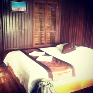 I had thought I had seen the largest spider in my life in Laos. I had been mistaken. In our bungalow, which was sort of open air, whilst Alex was in the shower was easily the largest spider I have ever had the displeasure to be within a few feet of. It was the size of my hand, but the body was double the size of my thumbs. And it was fast. It may have been scared of us, but we could not sleep in that room knowing that it could potentially climb on our faces in the middle of the night. We were tired, and just wanted a good night sleep. So, after that and finding droppings of some sort on our bed, which increased in number when we returned, we opted to pay to upgrade to the sea view villa. It was a good choice. For only $20 we had three times the size, more functional AC, no bugs, a rain shower and deck overlooking the bay. Both of our moods improved dramatically. Though we can rough it when needed we both thoroughly enjoy where we sleep and put a lot of effort and research into finding unique and exceptional places to stay. So far, they have made our trip just that much better. Many backpackers pride themselves on how cheaply they sleep, and can’t understand why one would care, given “you are only sleeping there.” But to us it matters a great deal, we don’t need much, but it’s those little extras that make a difference. Something we’re willing to pay a bit more for, even if it means we can’t travel as long. We both agreed, no more bungalows this trip.
