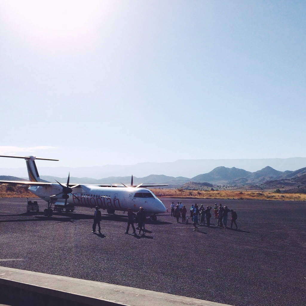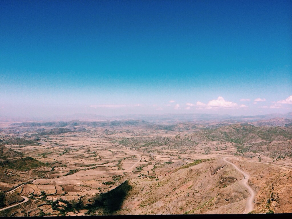 The landscape from the air of central Ethiopia is reminiscent of the Southwestern United States, but perhaps, even more dramatic. Leaving Addis, farms and villages stretch on the flat plains towards the horizon, dotted on asymmetric swatches of green and brown earth. Suddenly, enormous canyons appear everywhere. They are staggeringly deep, all with villages perched precariously on their edges overlooking, what must seem from their perspective, oblivion. It’s thought to be the result of tectonic plates. Though it looks distinctly like the earth was pelted by hundreds of asteroids.