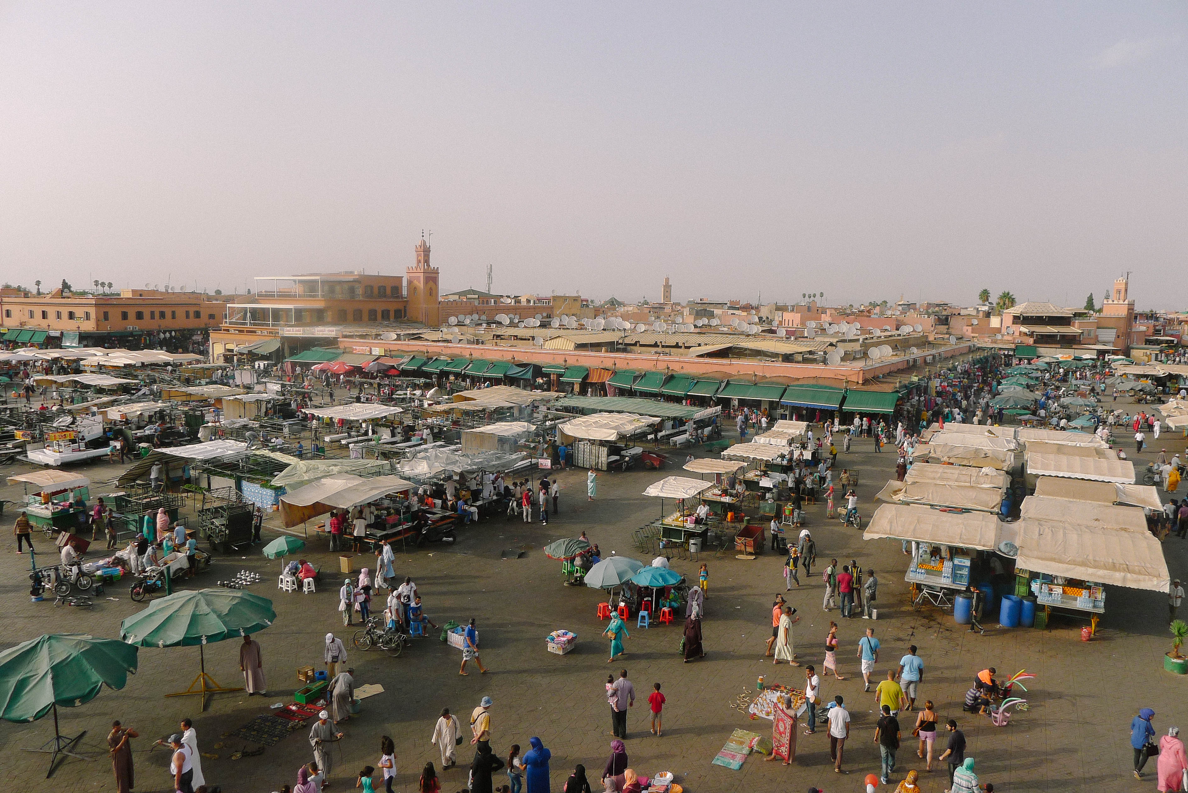 We set out to explore near the hotel, which happened to be the Jeemaa el Fna, Marrakech’s largest market. Our guide gave us a quick historical rundown of the country, as well as Islam. I’m not sure if it was because we were Americans, or simply non-Muslims, but he immediately wanted to dispel myths and inform us that Morocco, though Islamic, was the most liberal country. We nodded along, and tried to let him know we were very interested in learning more, and didn’t have pre-conceived notions, which was of course, not entirely true. But since I’ve began traveling I’ve had a great interest in Islam, which like Judaism is an ancient religion, and while many of the practices, particularly regarding Women’s rights don’t sit well with me, there is a logical aspect about it that I find fascinating. Plus, mosques are my all time favorite religious building, I think mostly, because the use of symmetry. I greatly enjoy symmetry. Though the mosques in Morocco are far more simple, generally, than those in say, Istanbul where ostentatious design rules. Here, rather, they are humble and functional, and rarely exhibit minarets.