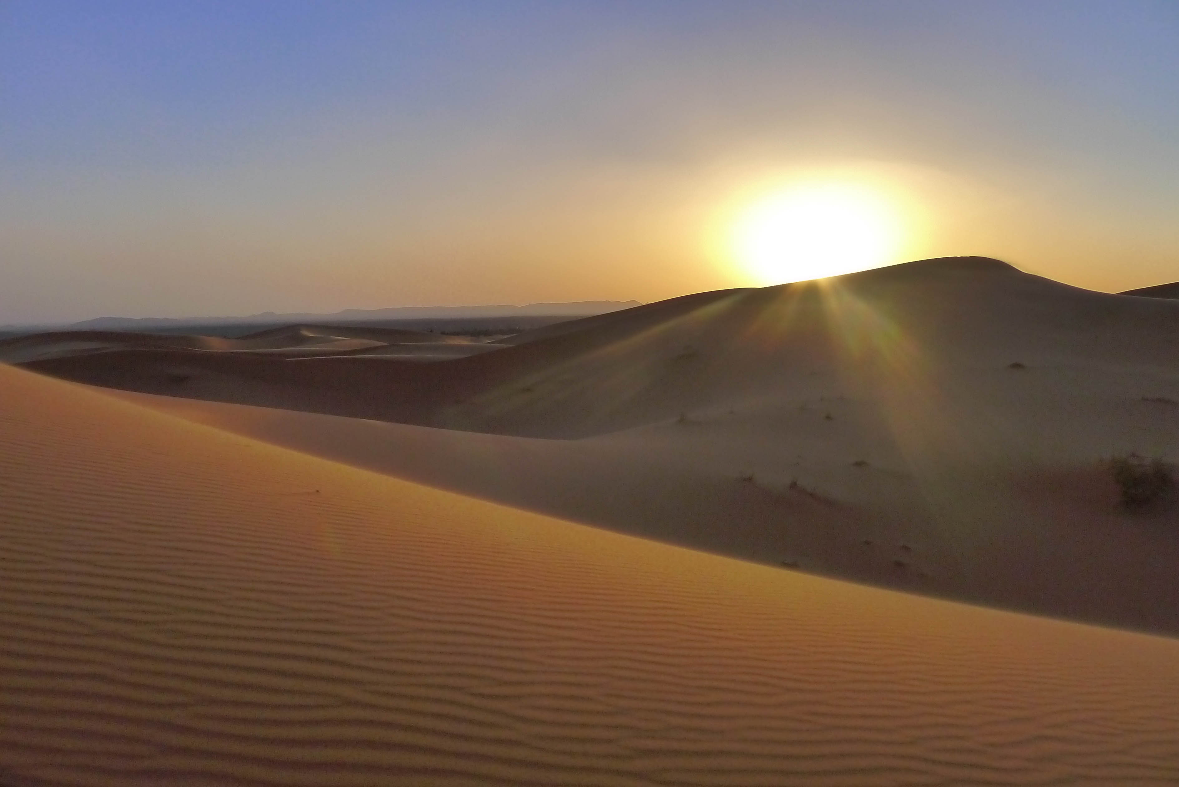 The Sahara is unlike any desert I’ve been too. The sheer expansive nature is incredibly impressive, imposing shifting dunes expand infinitely to the horizon. The color shifts throughout the day, from pale near-white sand in the morning to deep almost-coral in the evening. When the winds come, as they do most days around 4-5pm, great currents of sand stream from the peaks of the dunes, mixing with the air, obscuring your vision. Then suddenly it stops and the desert is calm, and eerily silent, save for the occasional camel groaning in the distance as they take tourists to their personal desert camps, hidden in the valleys of the great dunes.