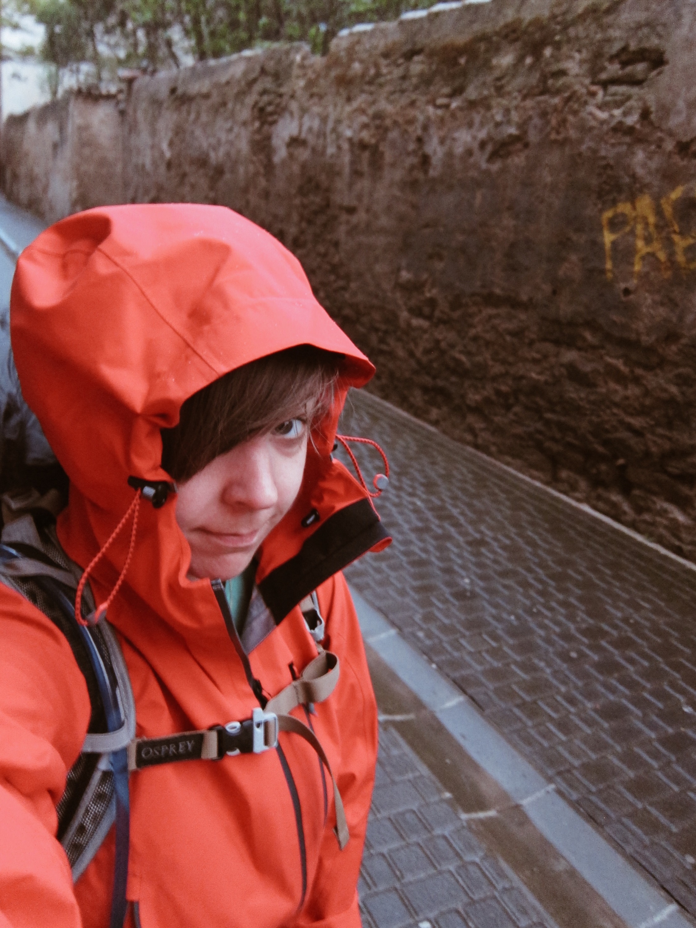 Today wasn’t all bad, thankfully. The scenery, when the rain let up was excellent as usual, today was rolling green hills along a Roman road with vineyards beginning to crop up every few kilometers.