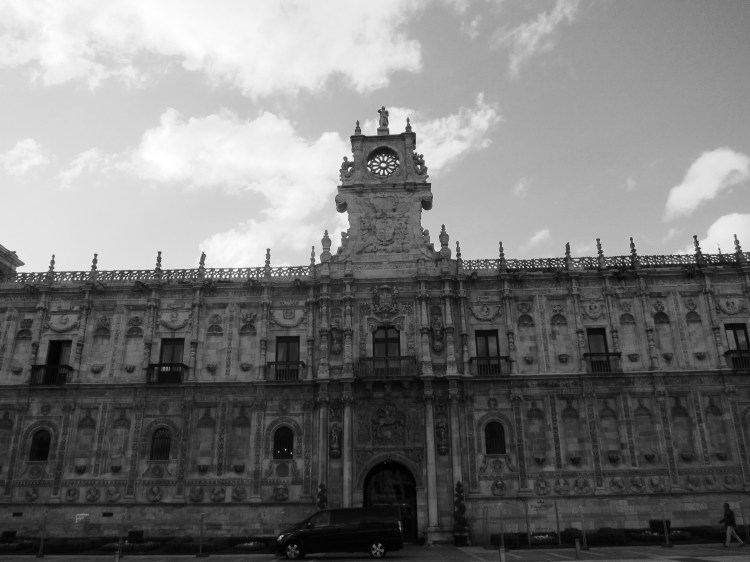 In Leon I caught the last few hours of sunlight and found my hotel, the Parador. Which sits directly on the Camino and is the site of the “fancy” hotel from the movie The Way. Though their rooms were decidedly nicer, mine is pretty cute. Plus the building itself is pretty impressive.