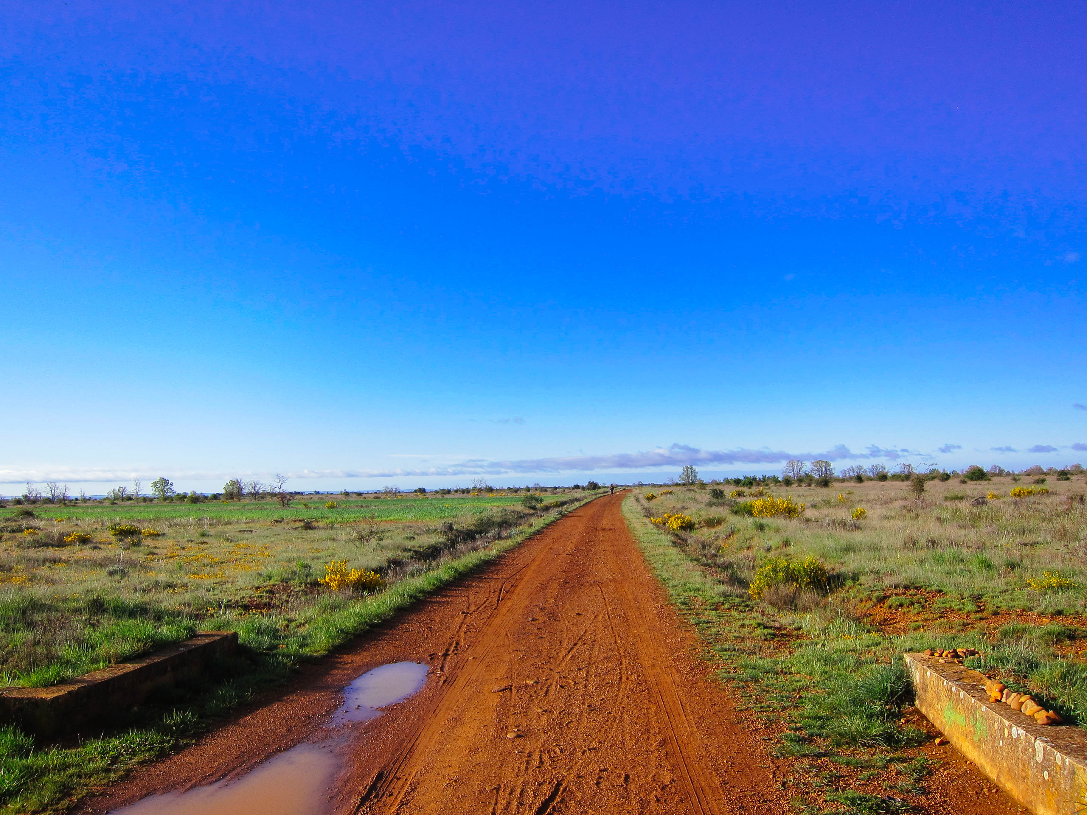 After breakfast a very kind, though mildly confused taxi driver took me to the city limits, and into Fresno del Camino, which happens to be almost exactly 300km from Santiago. I got a relatively late start, hitting the trail around 8:30. But the trail is flat here, and being by myself I was able to pick up my pace.