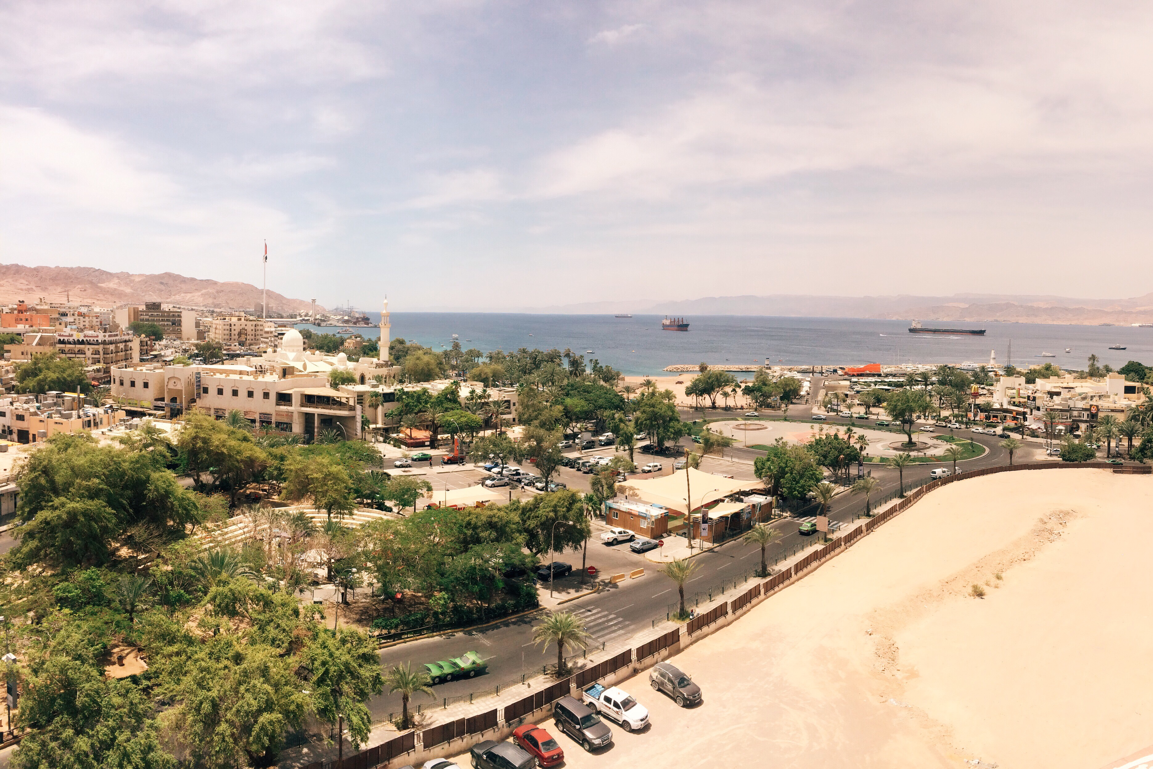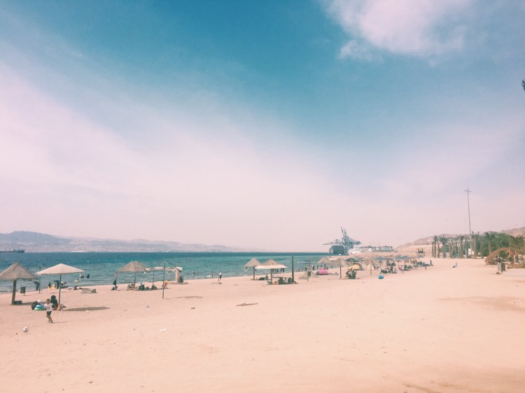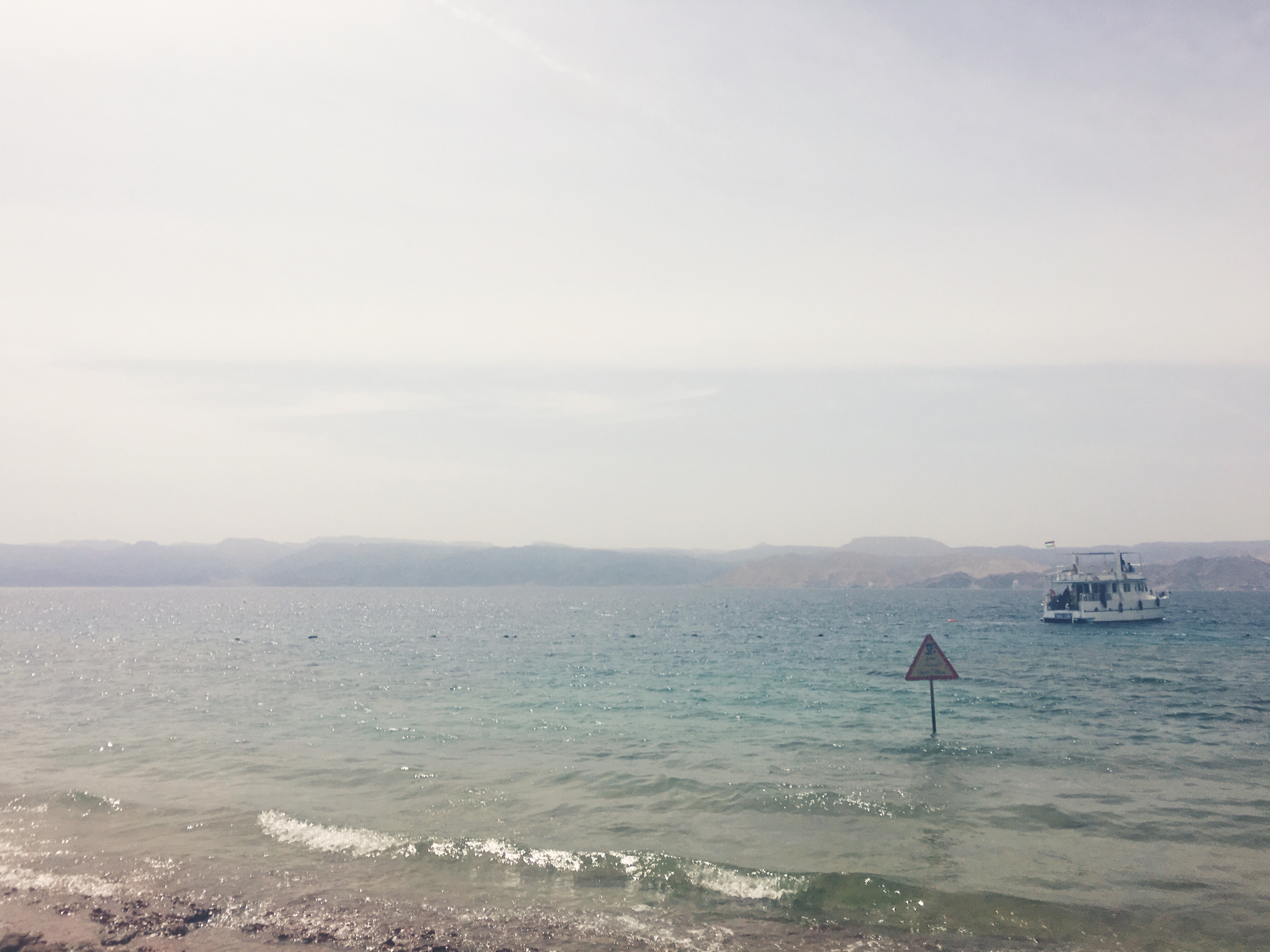 We took the Kings Highway south from Petra, winding down towards the sea. For such a small country covered mostly by desert the terrain varies wildly from desolate barren mountains to flat valleys and the occasional spotting of vegetation. This time, our drive was pleasant and direct. Ninety minutes later we reached the Red Sea, within a few miles radius is Egypt, Isreal, and Saudi. To get to the beach we drove the lonely port stretch from Aqaba towards Saudi, the closest we’ll likely ever be to visiting the Kingdom.