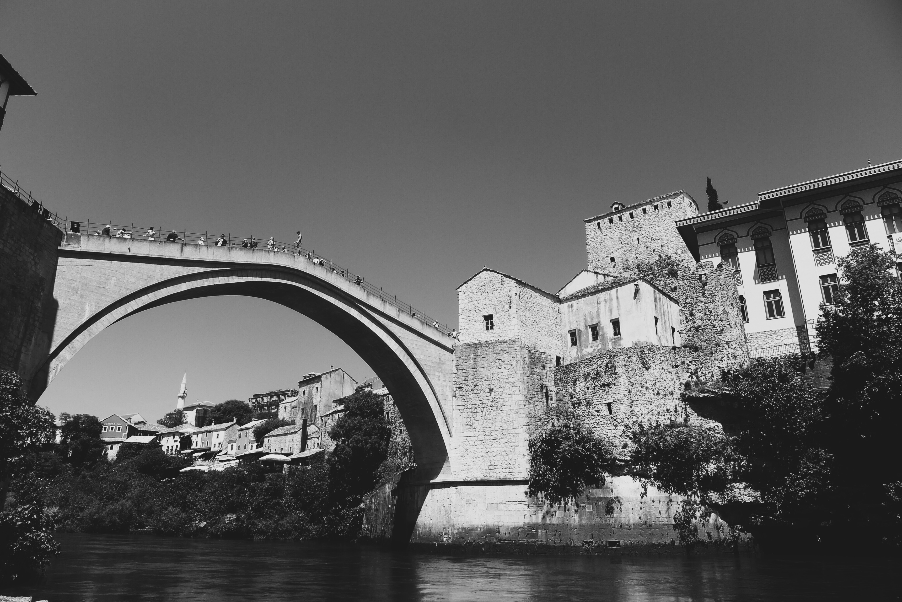 Back in town we ate an early dinner and headed over to the bar owned by th hostel overlooking the old bridge, since rebuilt from the war. Ziča brought us a photography book from the war and we spent the evening chatting with him and comparing the images in the book to the rebuilt versions of today.