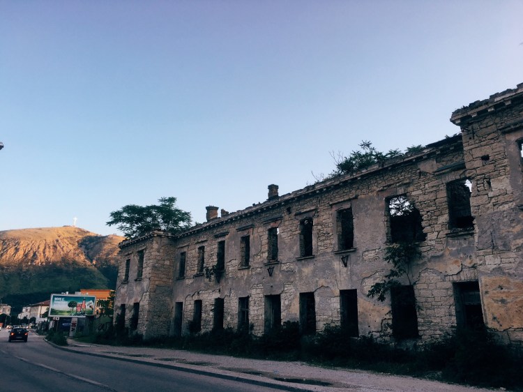 We met an American family of four, traveling with their two adult daughters that would be our companions for part of the tour. There are a lot of North Americans in this area, something we’ve yet to get used to. After breakfast we hopped in a few cars and headed up the mountain overlooking the city, marked by an absurdly large cross. Here, our guide Ziča explained what happened in Mostar, namely, the great division of east and west Mostar. He is from the east side, a prodominantly Muslim area (though much more liberally practiced here) as a result of the Turks inhabiting the land, who also built the famous bridge. The west is orthodox and more closely aligned with Croatia. He told us stories from his youth, of how good things were under Titos command, insisting he wasn’t the dictator others claimed he was, but the best leader for former Yugoslavia. He was clearly nostalgic for that time, and still very angry. Understandably. How strange it must be to walk along the city streets in your home town and wonder if perhaps the man ahead of you was the sniper from the other side that killed your best friend. The tension is still high here, evidently. Though from the outside its impossible to tell, it just seems like a regular, bustling large town.