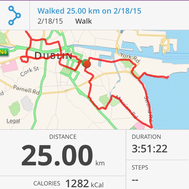 By “training” I mean, wander around Dublin at a reasonably quick pace while stopping for groceries and cappuccinos. I don’t really know how I should be preparing for this, having never attempted anything like it. The internet ranges in advice from, “didn’t train, was fine” to “here’s my guide to the 156 exercises you should master for a long distance hike! Do it or you’ll die!” I’m a reasonably fit person, and don’t have the inclination to walk 800km in preparation to…walk 800km. After all, that’s what this is, a walk. Not a run, not a hard climb. It’s long, but it’s not a grand feat of strength. More like not pushing too hard and wearing proper shoes (to grossly oversimplify). I didn’t train at all for Kili, at best I was acclimated from being in Moshi for a few months. And I made it, granted, with a fair amount of fanfare and struggle. But I did it, so I figure I can do this too. But because it doesn’t hurt to be somewhat prepared, I’ve thrown together a training program to get my body (most particularly, my joints) somewhat acclimated for a daily assault.